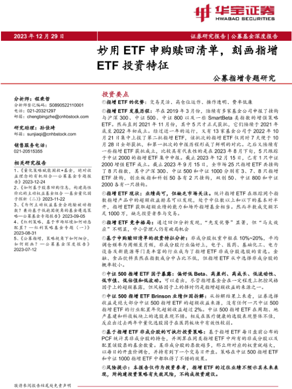 【华宝证券】【20231229】公募指增专题研究:妙用ETF申购赎回清单,刻画指增ETF投资特征-22页 行业研究