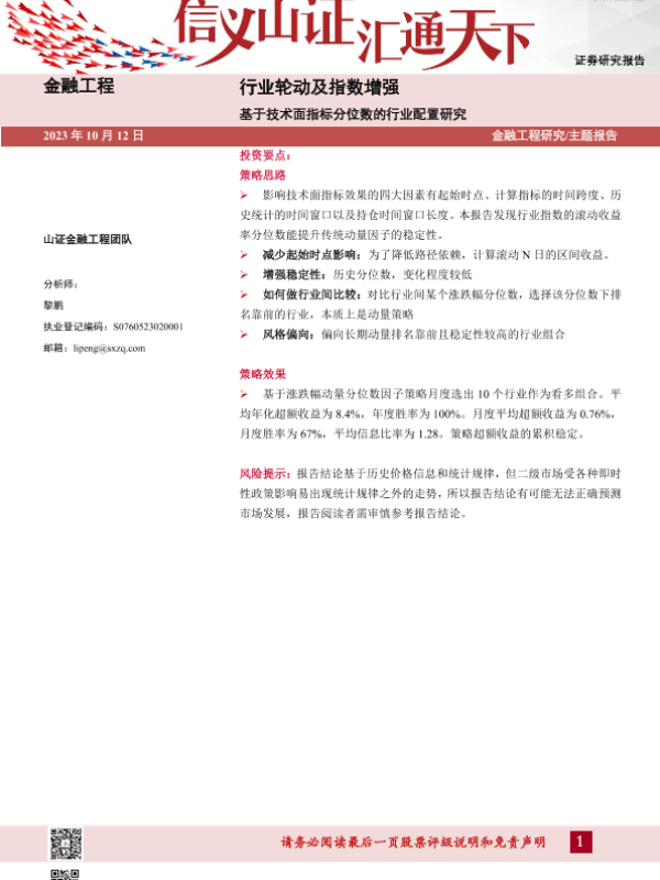 【山西证券】【20231012】基于技术面指标分位数的行业配置研究:行业轮动及指数增强-32页 行业研究