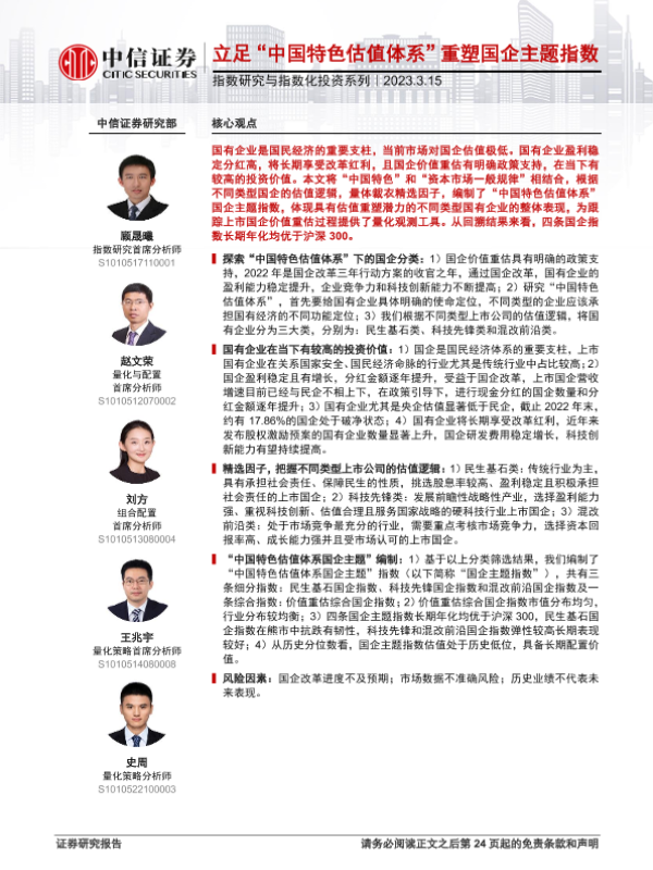 【中信证券】【20230315】指数研究与指数化投资系列:立足“中国特色估值体系”重塑国企主题指数-25页 行业研究