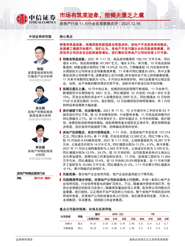 【中信证券】【20211216】房地产行业11月行业宏观数据点评-16页 行业研究