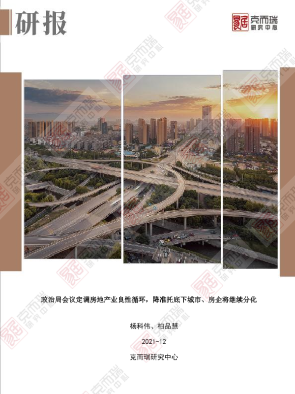 【克而瑞研究中心】【202112】政治局会议定调房地产业良性循环,降准托底下城市、房企将继续分化-3页 行业研究