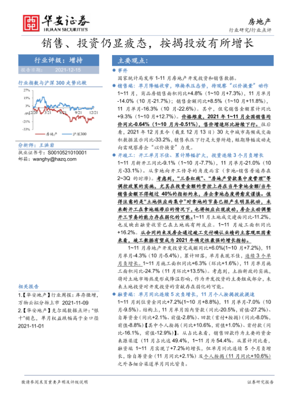 【华安证券】【20211215】房地产行业点评:销售、投资仍显疲态,按揭投放有所增长-3页 行业研究