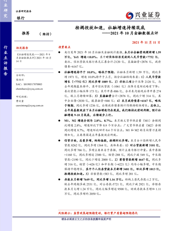 【兴业证券】【20211111】按揭投放加速,社融增速持续筑底-6页 行业研究