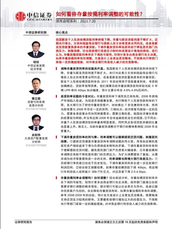 【中信证券】【20230720】如何看待存量按揭利率调整的可能性?-20页 行业研究