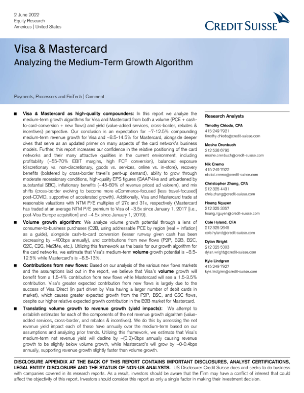 【瑞信】【20220602】瑞信-美股投资策略-维萨和万事达卡:中期增长算法分析-88页 行业研究