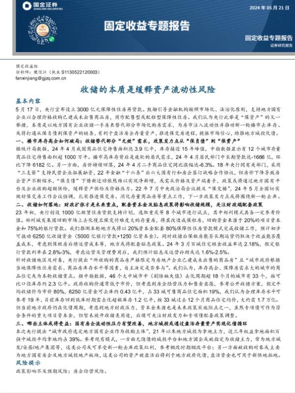 【国金证券】【20240521】固定收益专题报告:收储的本质是缓释资产流动性风险-11页 行业研究