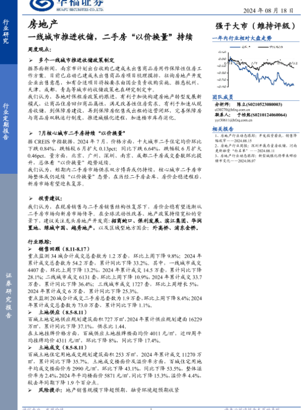 【华福证券】【20240818】房地产行业定期报告:一线城市推进收储,二手房“以价换量”持续-14页 行业研究