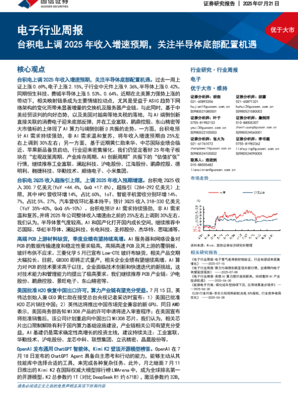 【国信证券】【20250721】电子行业周报:台积电上调2025年收入增速预期,关注半导体底部配置机遇-10页 行业研究