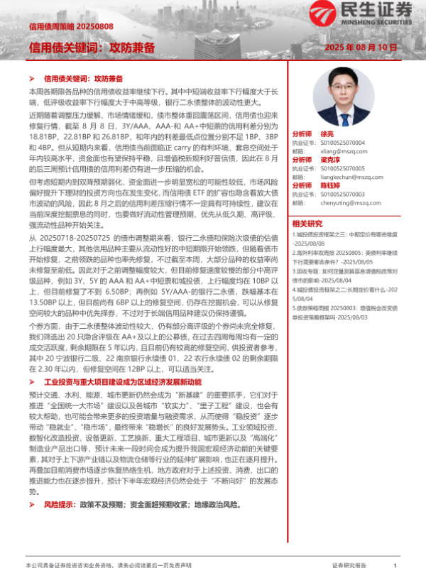 【民生证券】【20250810】信用债周策略:信用债关键词,攻防兼备-23页 证券期货研究报告