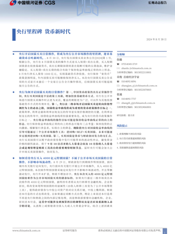 【银河证券】【20240830】宏观动态报告:央行里程碑,货币新时代-10页 行业研究