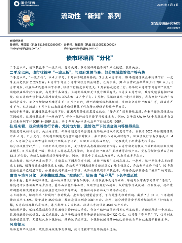 【国金证券】【20240801】流动性“新知”系列:债市环境再“分化”-15页 行业研究