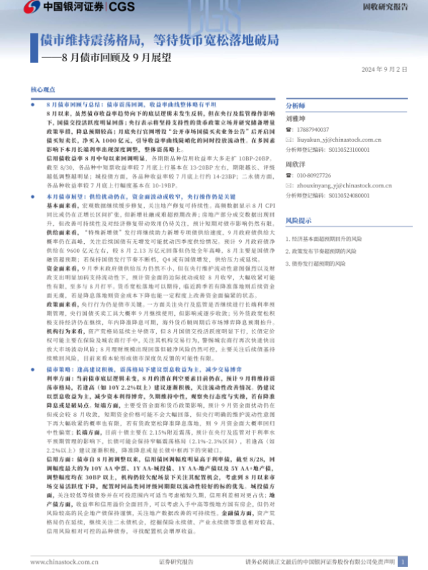 【银河证券】【20240902】8月债市回顾及9月展望:债市维持震荡格局,等待货币宽松落地破局-22页 行业研究