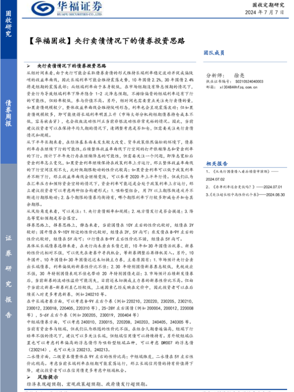 【华福证券】【20240707】央行卖债情况下的债券投资思路-19页 行业研究