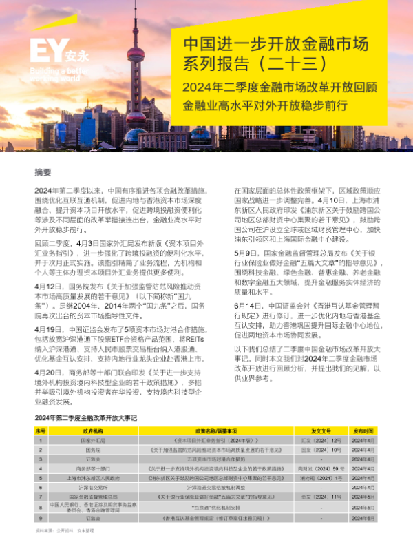 【安永】【20240630】2024年二季度金融市场改革开放回顾——金融业高水平对外开放稳步前行-4页 行业研究