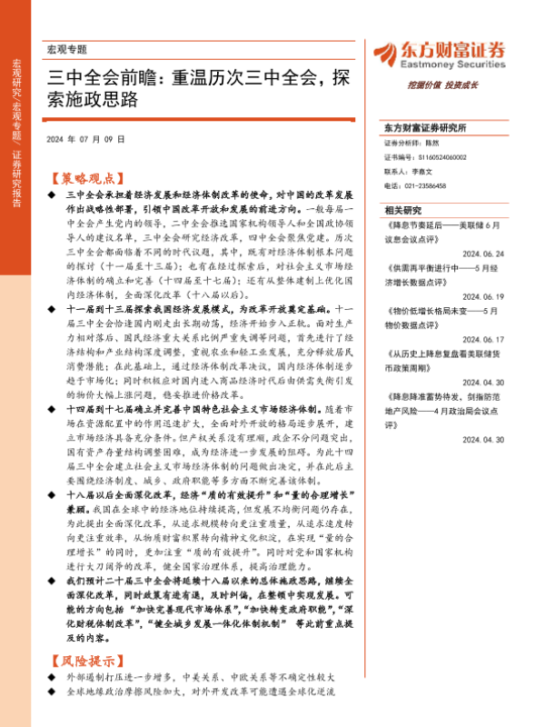 【东方财富证券】【20240709】宏观专题:三中全会前瞻,重温历次三中全会,探索施政思路-20页 行业研究