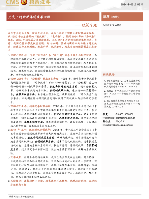 【海通证券】【20240603】政策专题:历史上的财税体制改革回顾-27页 行业研究
