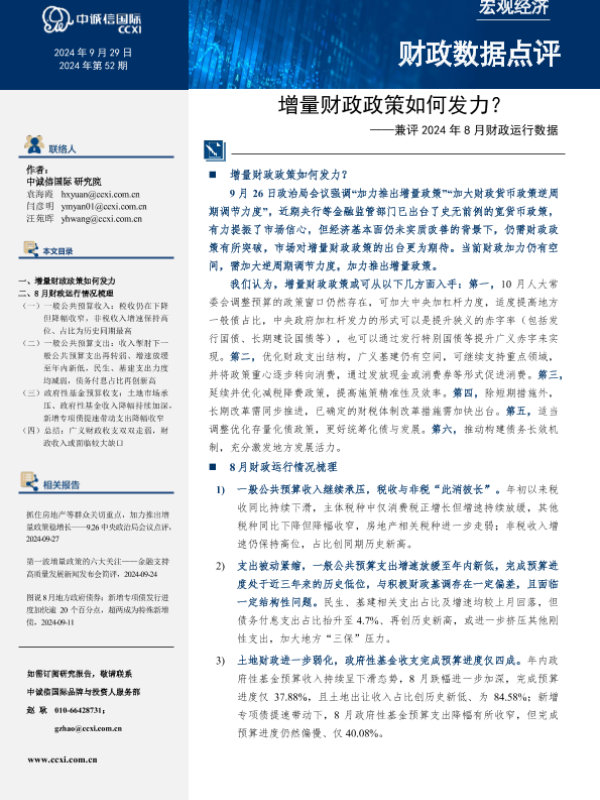 【中诚信国际】【20241104】增量财政政策如何发力?——兼评2024年8月财政运行数据-12页 宏观策略