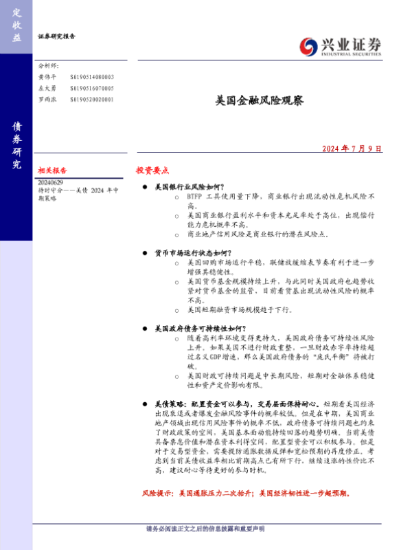【兴业证券】【20240709】美国金融风险观察-11页 行业研究