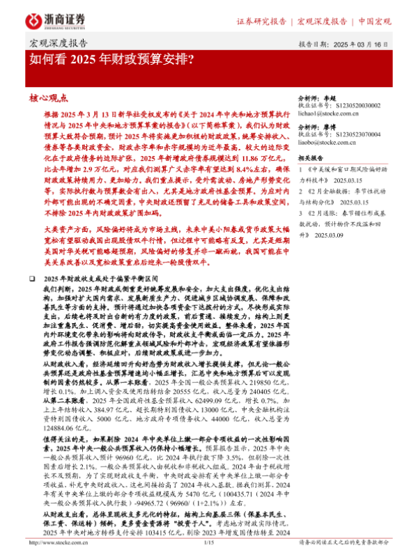 【浙商证券】【20250316】2025年03月19日更新-【浙商证券】宏观深度报告:如何看2025年财政预算安排-15页 宏观策略