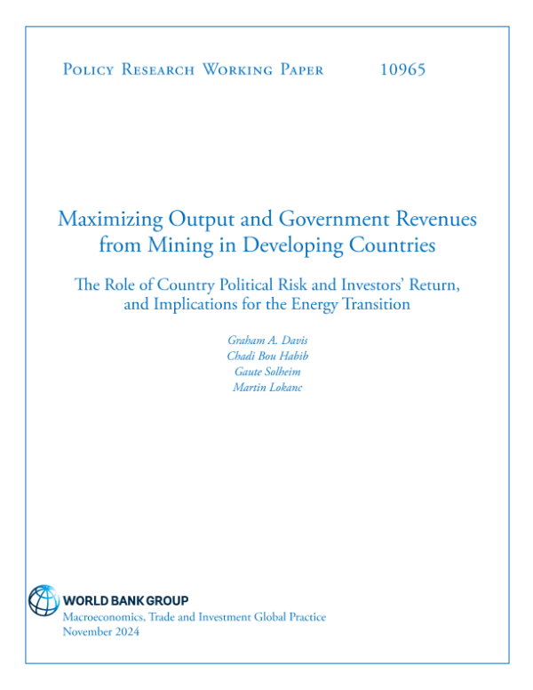 【世界银行】【202411】发展中国家矿业产出和政府收入最大化:国家政治风险和投资者回报的作用及其对能源转型的影响-50页 行业研究