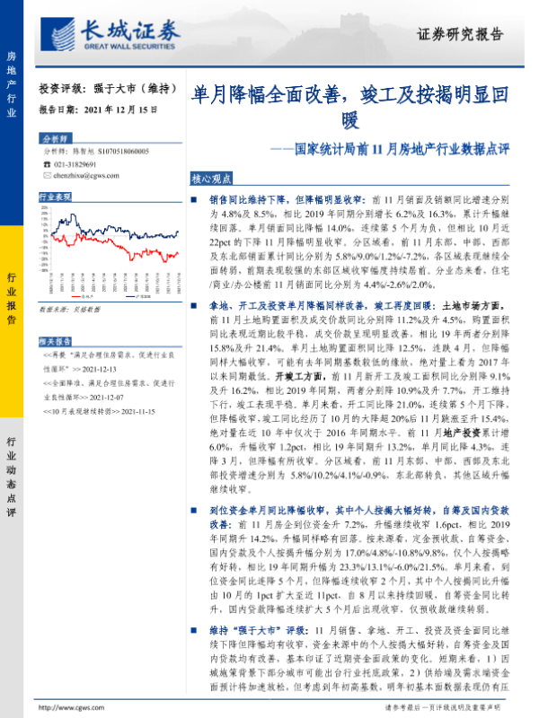 【长城证券】【20211215】单月降幅全面改善,竣工及按揭明显回暖-10页 行业研究