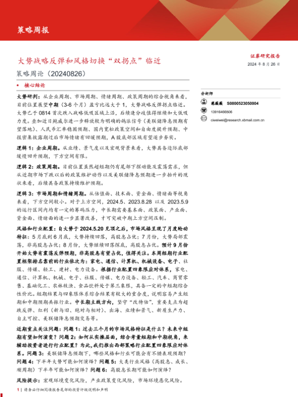 【西部证券】【20240826】策略周论:大势战略反弹和风格切换“双拐点”临近-21页 行业研究