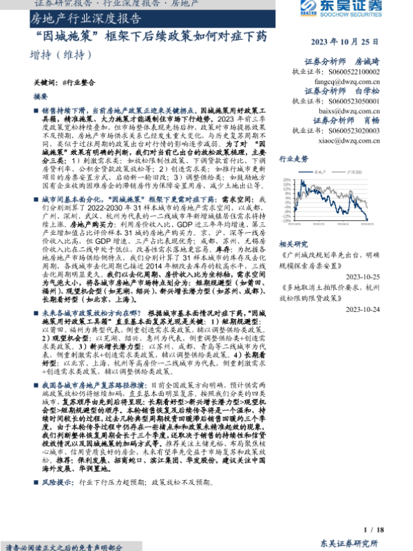 【东吴证券】【20231025】房地产行业深度报告:“因城施策”框架下后续政策如何对症下药-18页 行业研究