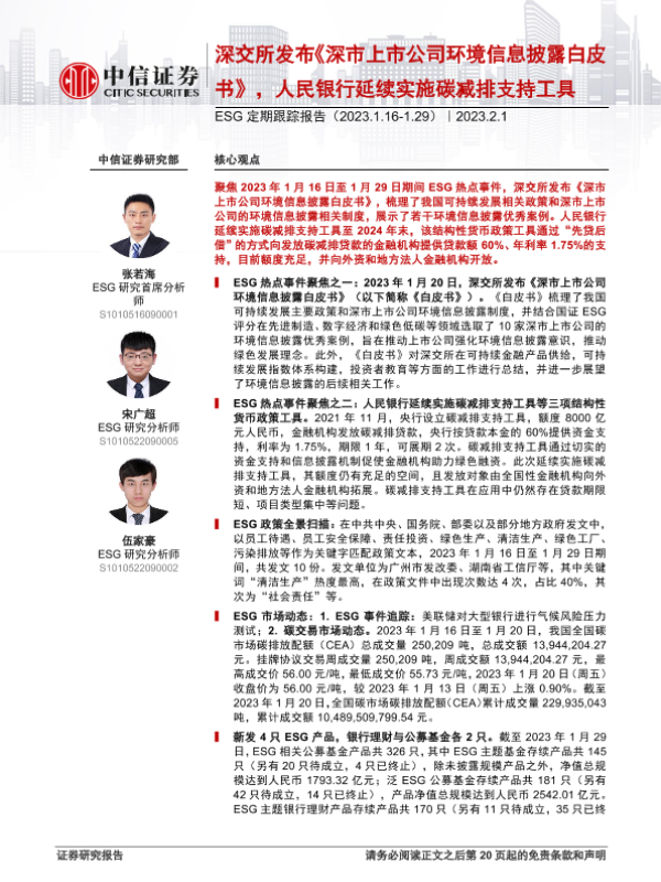 【中信证券】【20230201】ESG定期跟踪报告:深交所发布《深市上市公司环境信息披露白皮书》,人民银行延续实施碳减排支持工具-21页 行业研究