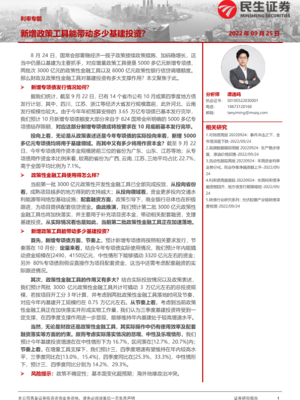 【民生证券】【20220925】新增政策工具能带动多少基建投资?-18页 行业研究