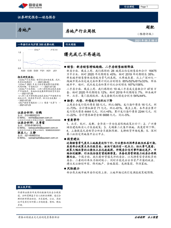 【国信证券】【20210809】房地产行业周报:曙光或已不再遥远-9页 行业研究