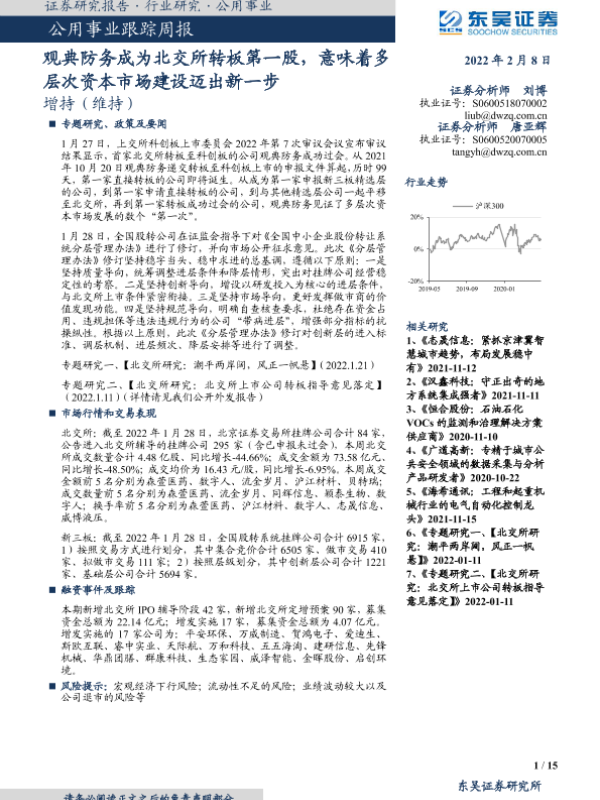 【东吴证券】【20220208】公用事业跟踪周报:观典防务成为北交所转板第一股-15页 行业研究