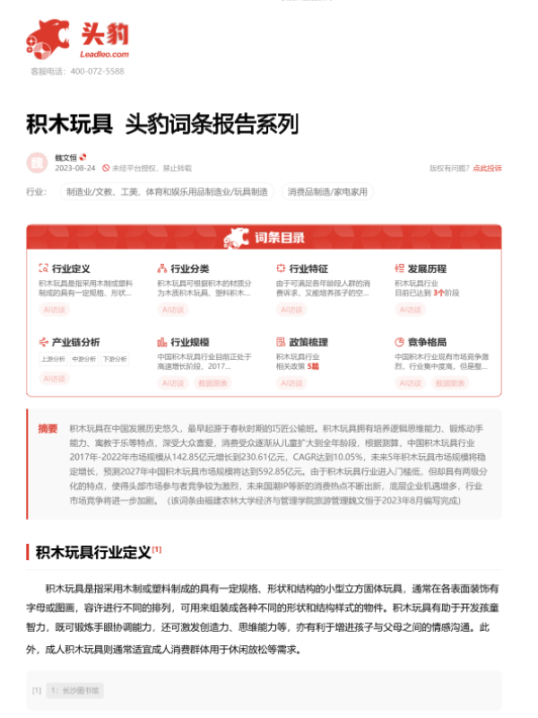 【头豹研究院】【20230824】积木玩具 头豹词条报告系列-15页 行业研究