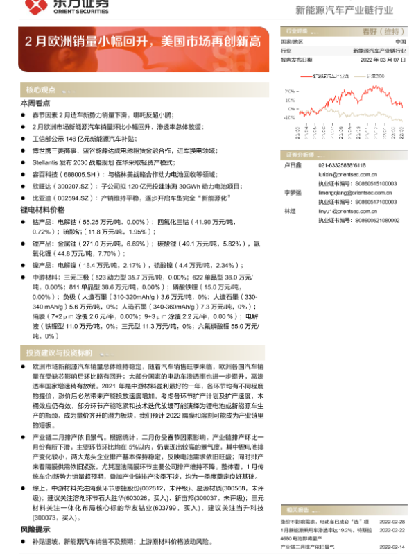 【东方证券】【20220307】2月欧洲销量小幅回升,美国市场再创新高-20页 行业研究