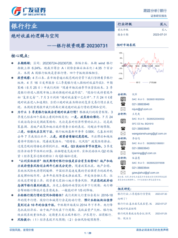 【广发证券】【20230731】银行投资观察:绝对收益的逻辑与空间-29页 行业研究