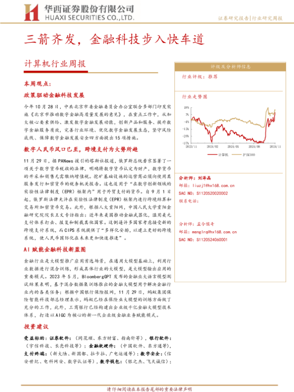 【华西证券】【20241201】20241201-华西证券-计算机行业周报:三箭齐发,金融科技步入快车道-32页 行业研究