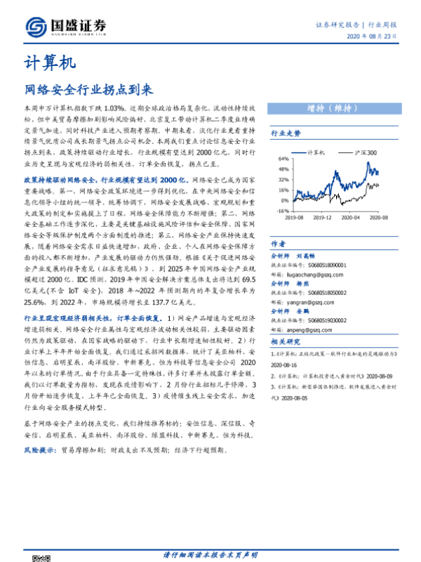 【国盛证券】【20200823】计算机行业周报:网络安全行业拐点到来-8页 行业研究