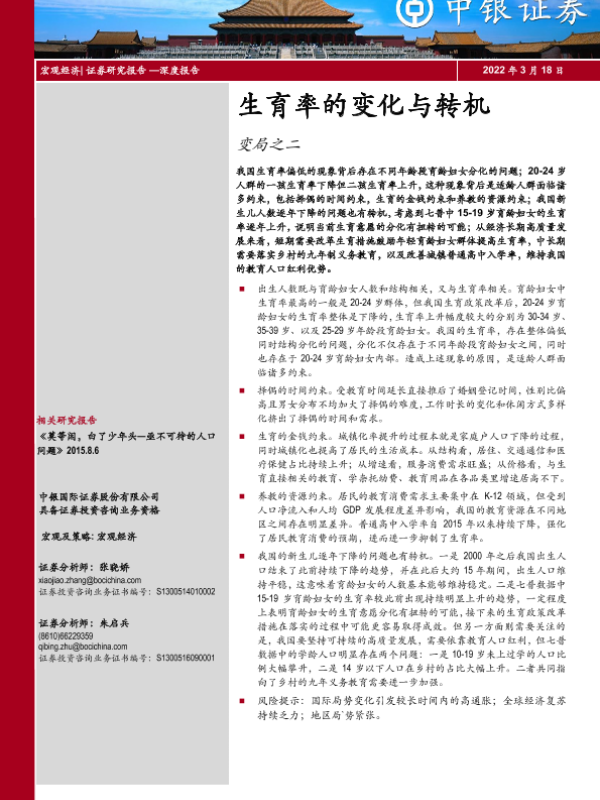 【中银证券】【20220318】变局之二:生育率的变化与转机-27页 行业研究