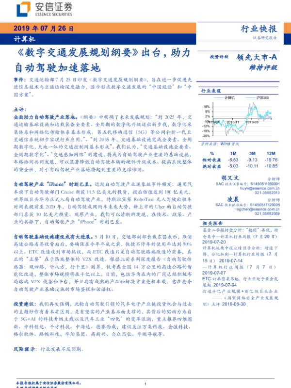 【安信证券】【20190726】20190726-安信证券-计算机行业快报:《数字交通发展规划纲要》出台,助力自动驾驶加速落地-3页 行业研究