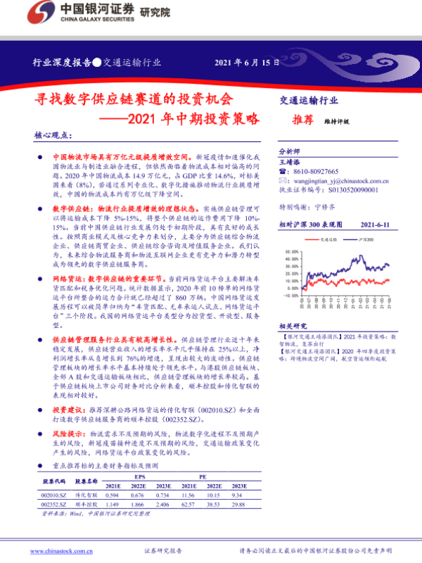 【银河证券】【20210615】交通运输行业2021年中期投资策略:寻找数字供应链赛道的投资机会-26页 行业研究