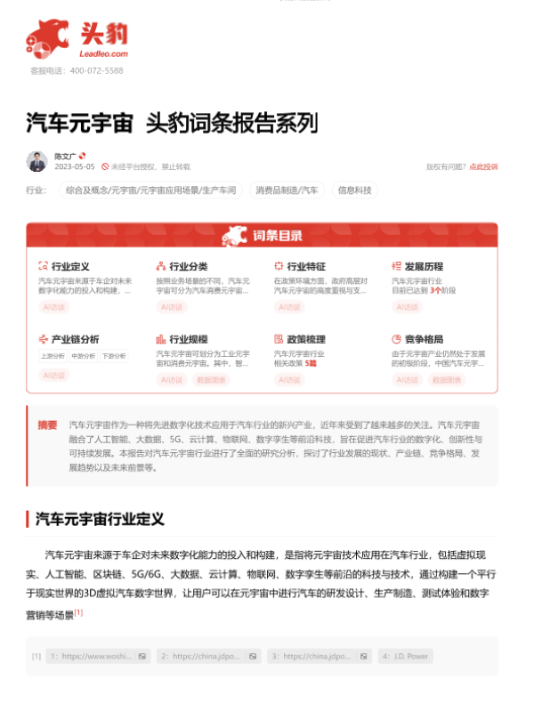 【头豹研究院】【20230707】汽车元宇宙 头豹词条报告系列-18页 行业研究