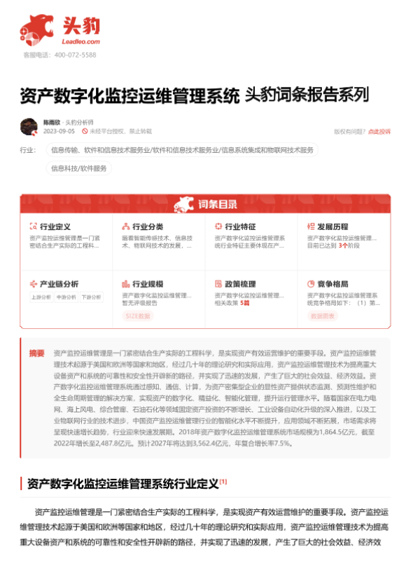 【头豹研究院】【20240102】20240102-头豹研究院-资产数字化监控运维管理系统 头豹词条报告系列-21页 行业研究