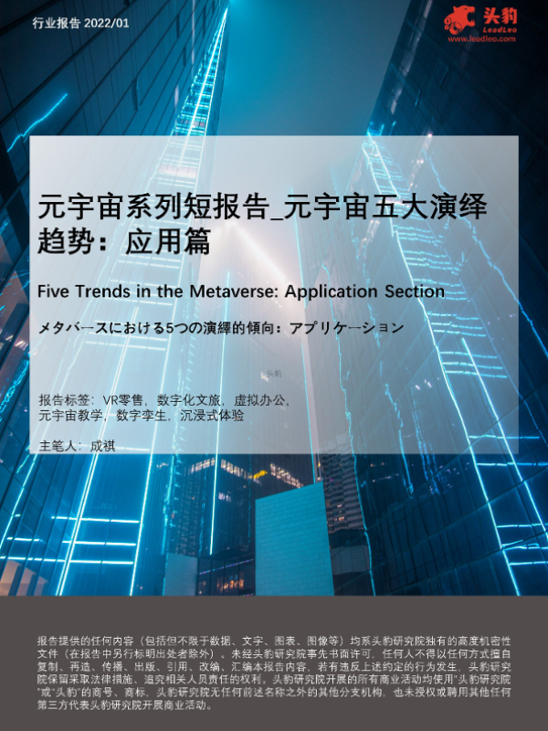 【头豹研究院】【20220330】元宇宙系列报告_元宇宙五大演绎趋势:应用篇-23页 行业研究