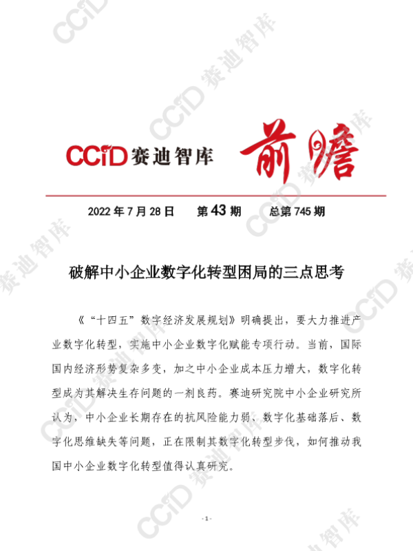 【赛迪研究院中小企业研究所】【20220728】破解中小企业数字化转型困局的三点思考-8页 行业研究