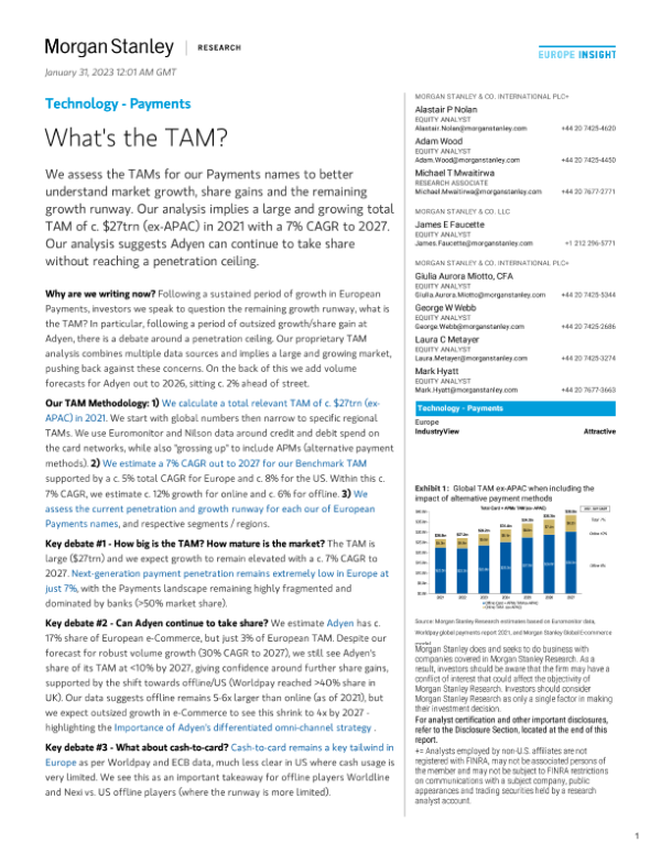【Morgan Stanley】【20230131】Technology - Payments What's the TAM?-38页 行业研究