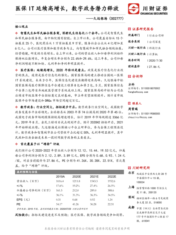 【川财证券】【20200730】医保IT延续高增长,数字政务潜力释放-25页 证券期货研究报告