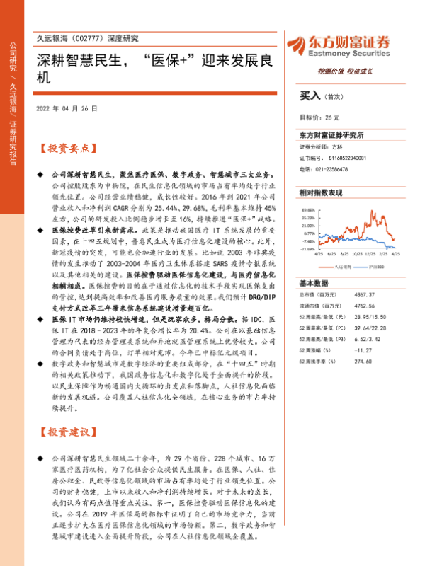 【东方财富证券】【20220426】久远银海(002777)深度研究:深耕智慧民生,“医保+”迎来发展良机-21页 行业研究