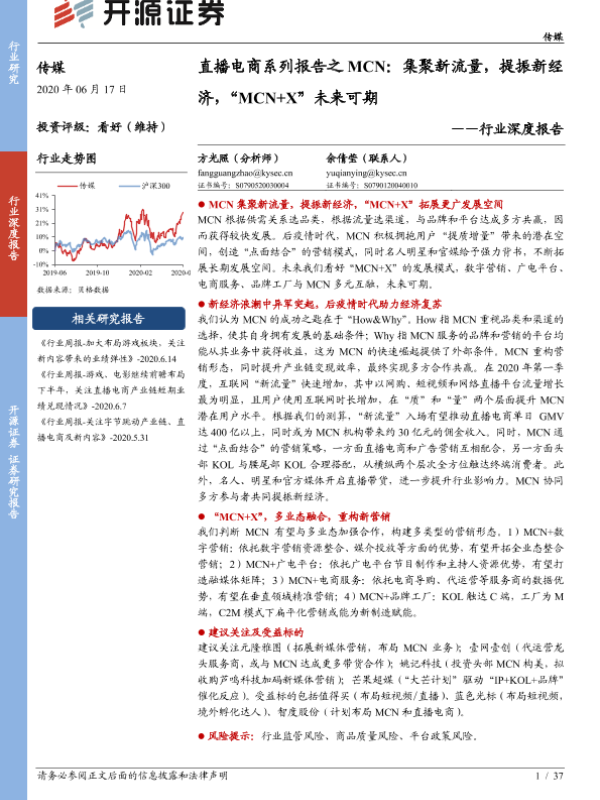 【开源证券】【20200617】直播电商系列报告之MCN:集聚新流量,提振新经济,“MCN+X”未来可期-37页 行业研究