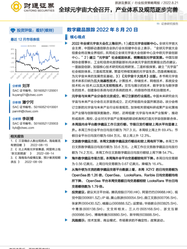 【财通证券】【20220814】旅游及景区行业投资策略周报:数字藏品跟踪-11页 行业研究