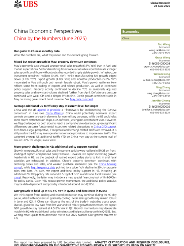 【UBS Securities Asia Limited】【20250622】China Economic Perspectives-25页 宏观策略