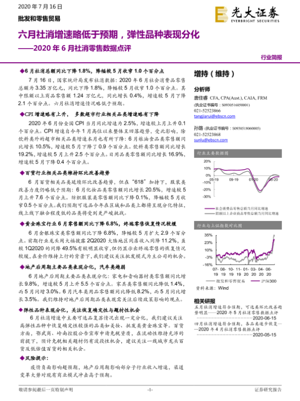 【光大证券】【20200716】2020年6月社消零售数据点评-6页 行业研究